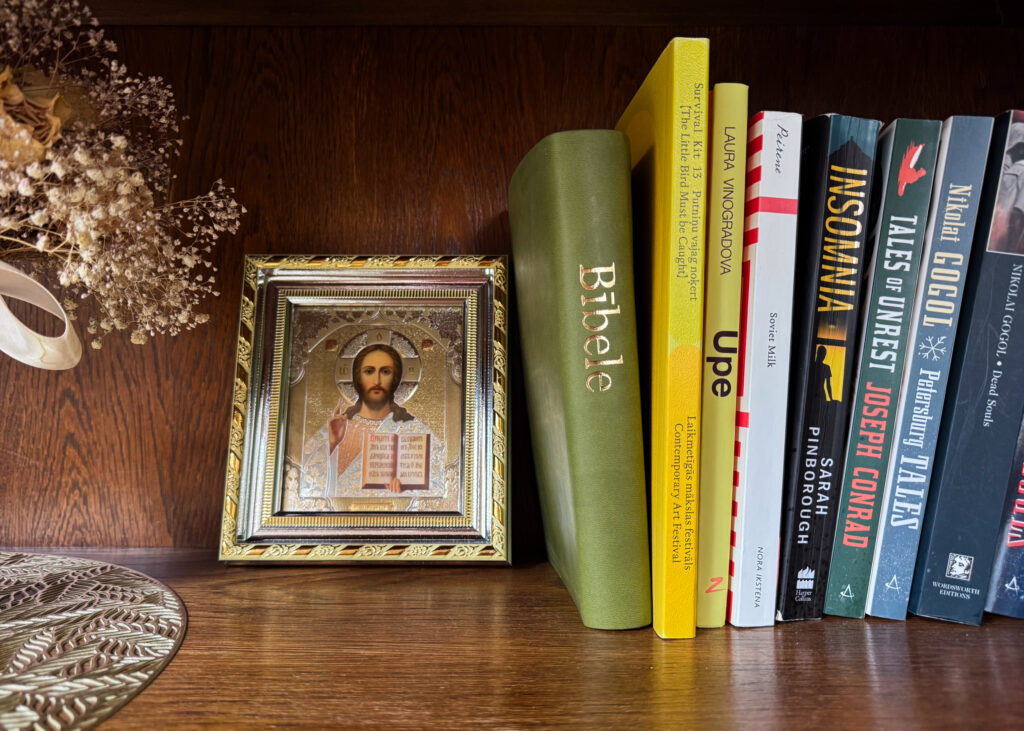 We are staying in an apartment on the top floor of an old, brick, apartment building on the edge of Riga’s old town. One of the first things I looked through after arriving was the collection of books displayed in the china cabinet.