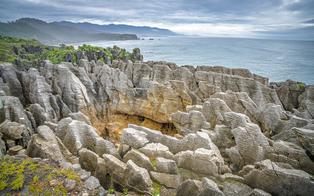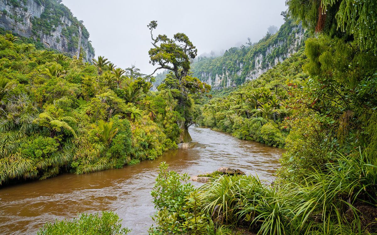 We spent five days on the West Coast, split between Franz Josef and Punakaiki, and it rained every single one of them. Unfortunately we never really got good views of the Franz Josef Glacier. But in Punakaiki we did get some nice views of the famous Pancake Rocks and went on a very wet hike through the rain forest on the Pororari River Track. The trail is nice and mostly tree-covered ,and the towering cliffs that the river is carved into are pretty amazing. It was very different scenery than the dry and arid hikes that we did in the Hāwea/Wānaka area days before.