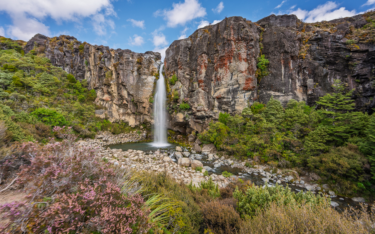 The second day we spent in Tongariro National Park we did a much shorter trail. The Taranaki Falls walk which basically started and ended at our front door. It’s just short of four miles and has a surprising amount of scenic variety since you hike down into a tree-lined valley following a river out to the waterfall. It’s about 500 feet of total elevation gain which made for a nice relaxing trek after hiking up the rim of Red Crater.