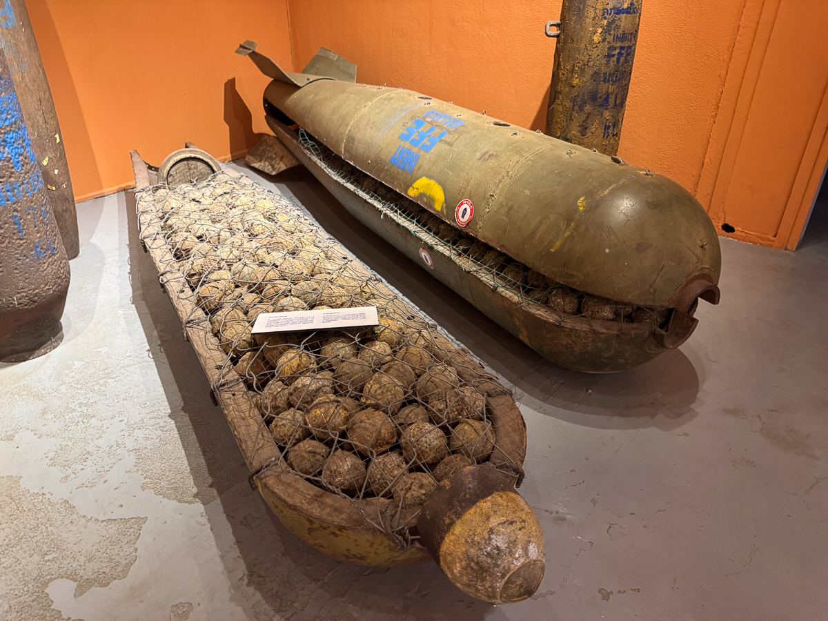 The purpose of the UXO museum is to educate people about what happened here, but more importantly they have two very practical missions. One is to continue the process of finding and removing the unexploded bombs from their land. The second is to educate their own rural citizens about the very real dangers of these old bombs. Rural farmers and their children are still being maimed and killed when they find these bombs. The subordinates of the cluster bombs are one of the most dangerous because to an unaware child, it just looks like a metal ball. So kids find them and play with them. The museum has video clips of interviews with young survivors giving their first hand accounts of finding these and the harm that it has caused them.