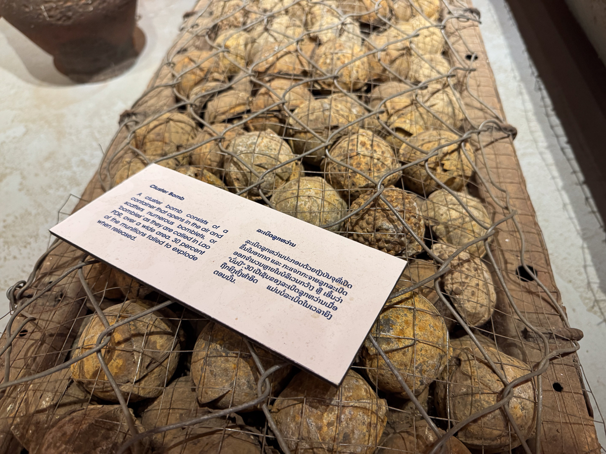 In Luang Prabang, Laos there is a museum called the UXO Museum. UXO stands for Unexploded Ordinances. This means unexploded bombs, rockets and cluster bomb subordinates which were dropped are all over the countryside in Laos.